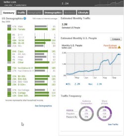 The Twitter demographics from Quantcast seem to indicate that Twitter users are more likely to be shareholders: the average age of Twitter users is higher (only 1% of under 18’s), they are wealthier (29% earn over $100k/year compared to 20%) and better educated (63% college-educated compared to 52%).
