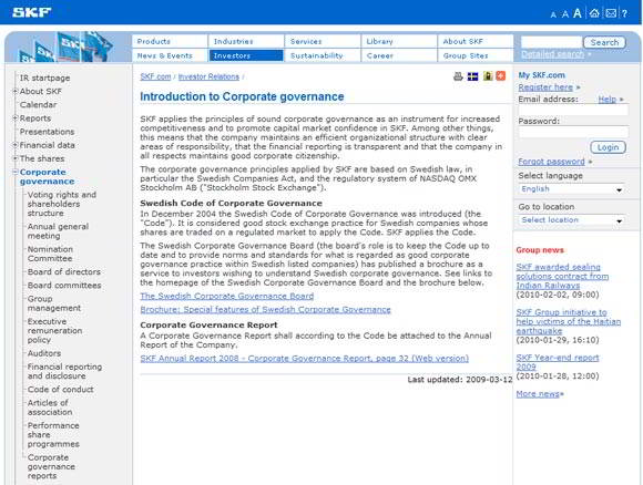 Suggestion for SKF–apply your overall content strategy in the Corporate Governance section as well as elsewhere.