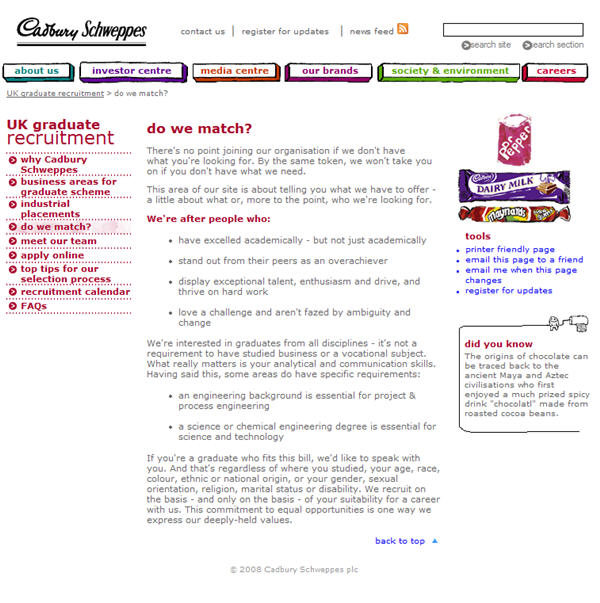 An example is Cadbury Schweppes, who have a page explicitly called ‘do we match?’ (see above).