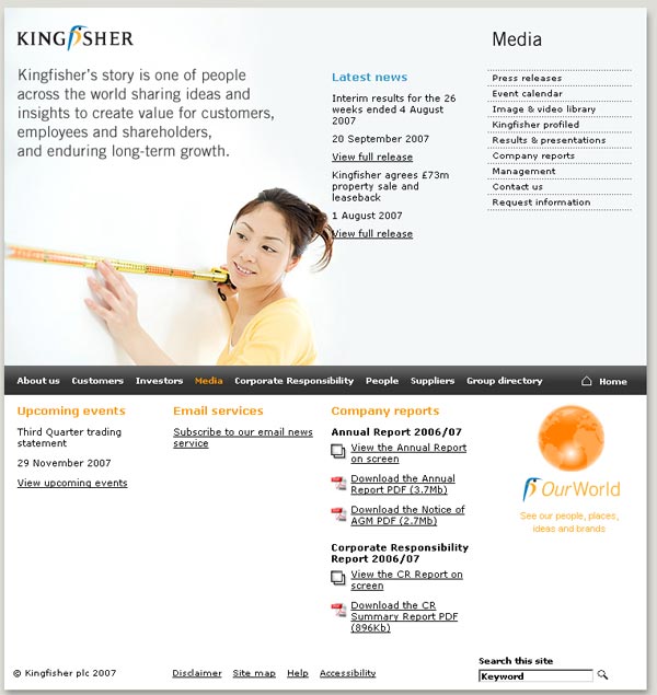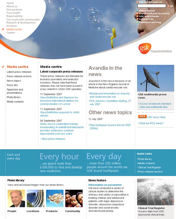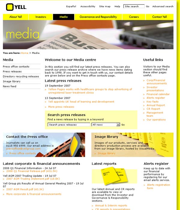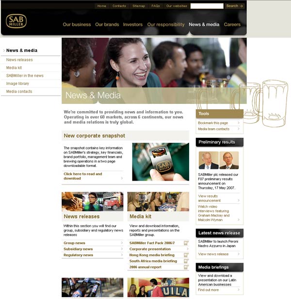 - News releases with a dedicated search facility, enabling the visitor to search by date, keyword or theme.
