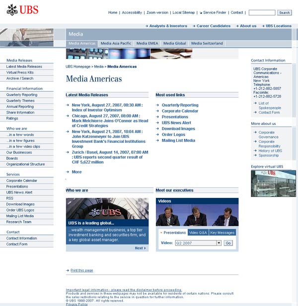 UBS split their media section geographically – and link to their Virtual UBS collection of videos